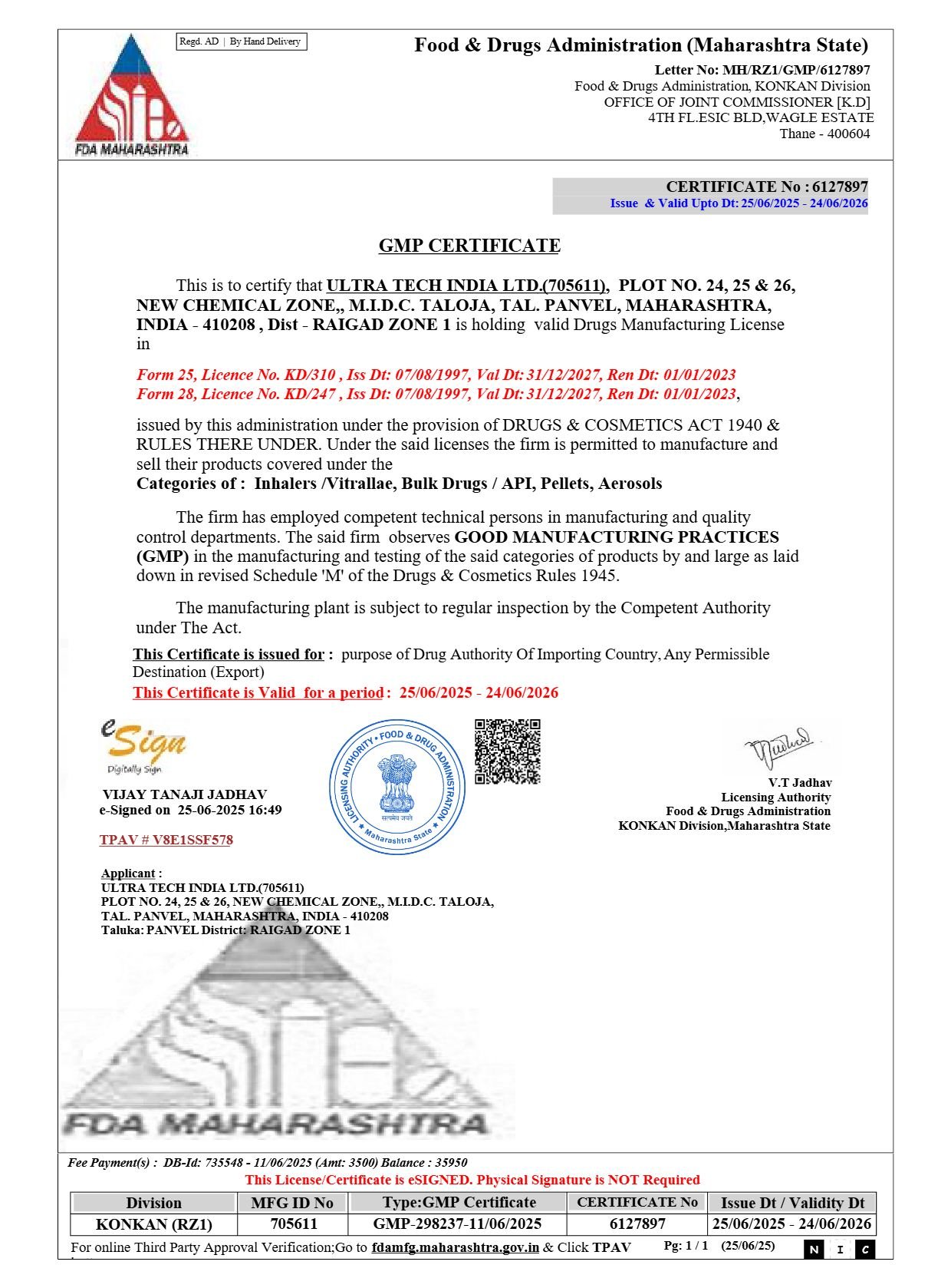 Ultratech is committed to total quality management and ensures that ICH guidelines and cGMP standards are complied and products comply with international quality standards.